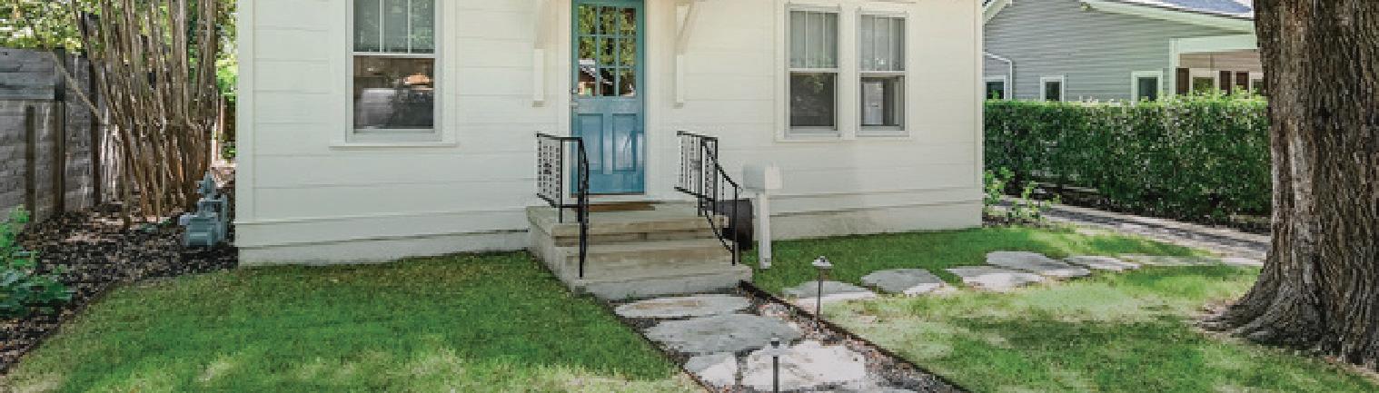 with just four employees. After WATW lost their lease on the space on Lavaca at 18th Street, in 2020, they bought their current facility on East Cesar Chavez and Navasota. She says that they were very lucky to find someplace so centrally located. “If we had kept renting, we would have only been at the mercy of landlords who could decide to sell when our lease was up.” WATW has a show every seven weeks, and they provide many educational opportunities. They are also well known for their fall Red Dot fundraiser. There is the gallery, which used to be a grocery store; the house behind it; and a side yard, making for a nice combination of spaces. Last year during SXSW, they were able to rent the building three times and brought in an addi-
