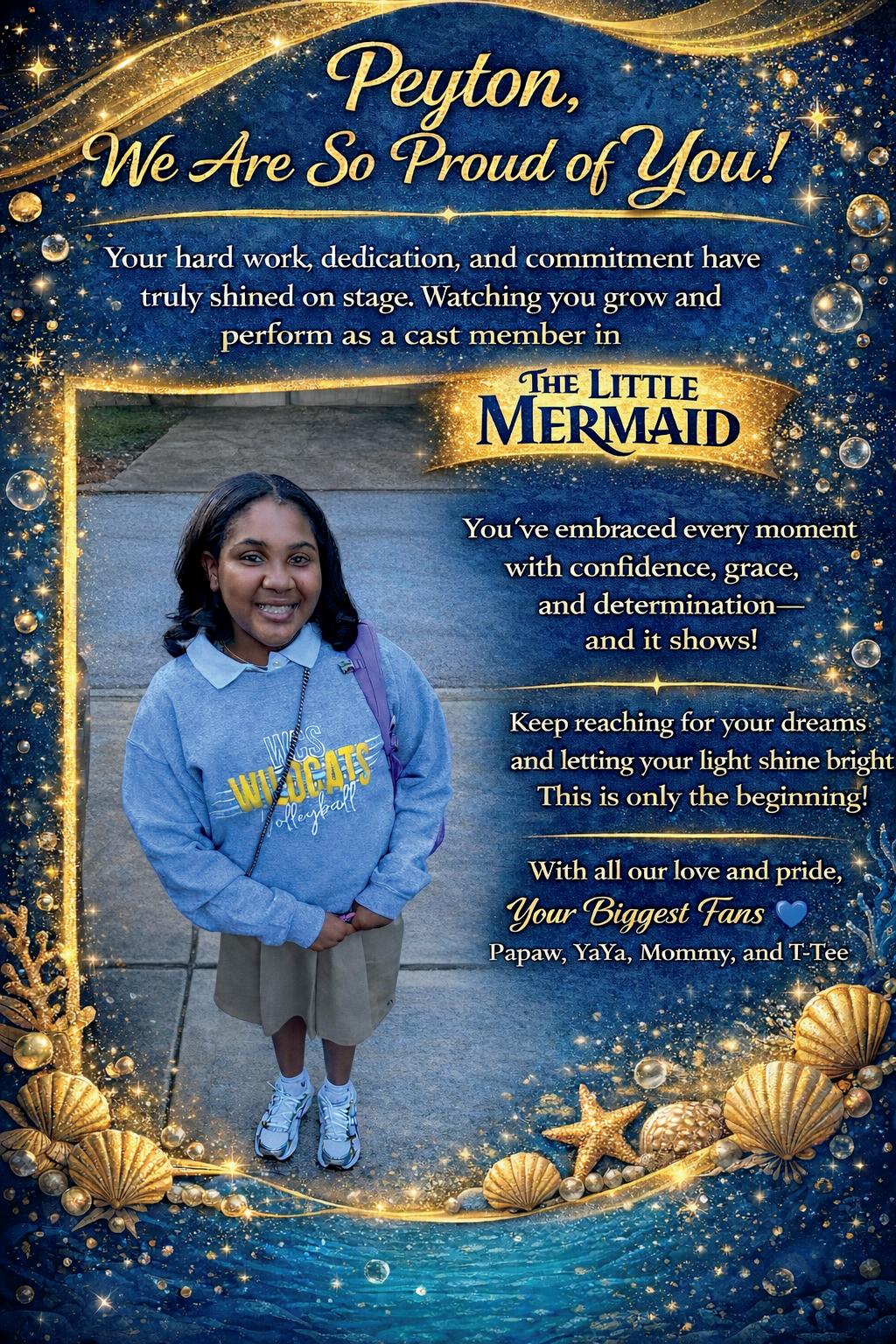 Taylor Wells (Princess Allana, Chef, Assistant Choreographer) is a 7th grade student at Westbury Christian School. She plays Allana in The Little Mermaid Jr.. She was recently selected as a cheerleader for the upcoming 2026-2027 season. This is her first year at WCS and her first production at WCS. She is so excited to get to know the cast. She also has the honor of choreographing Rowan’s aerial solo. She has done aerial circus for 4 years. She wants to thank Mr. Blaine for giving her the opportunity to become a choreographer She wants to thank Dr Lund for teaching her SOOOO much choreography last minute. Lastly, Taylor wants to thank everyone who came out for the show and she can’t wait for you to see life under the sea.