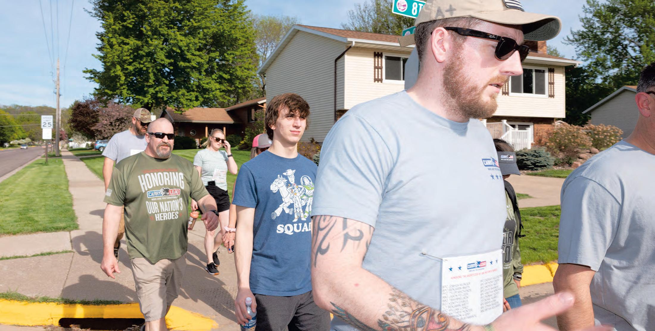 Walton visited Lake Hallie, Chippewa Falls, Eau Claire, Onalaska and La Crosse, Wisconsin, on May 6 as part of a nonprofit relay across 48 states that honors fallen service people and first responders.