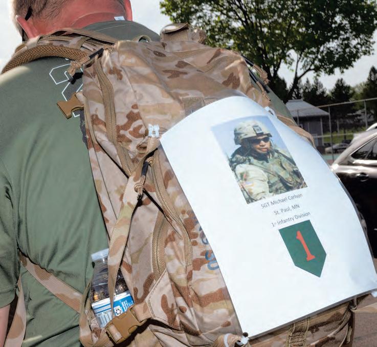 “I’m remembering a few guys throughout the course of the route,” said Walton, who joined the military in 1998 and was deployed to Iraq and Kosovo during his eight years of service. “But this particular portion, I’m out here for Sgt. Michael Carlson from St. Paul.”