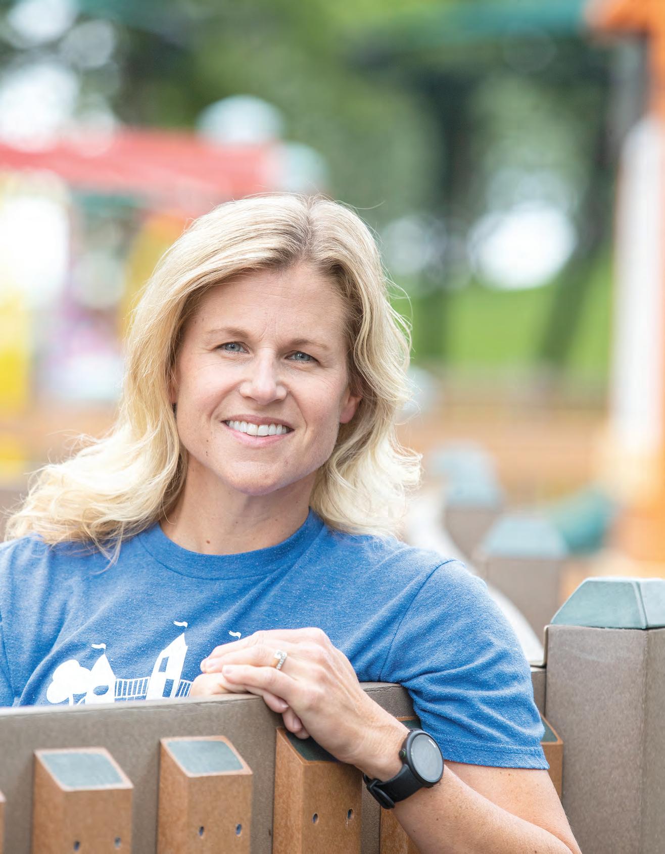 Rachel Skretvedt poses for a portrait in front of Destination Playground at Robbins Island, a project to which she dedicated hundreds of volunteer hours and oversaw from start to grand opening.