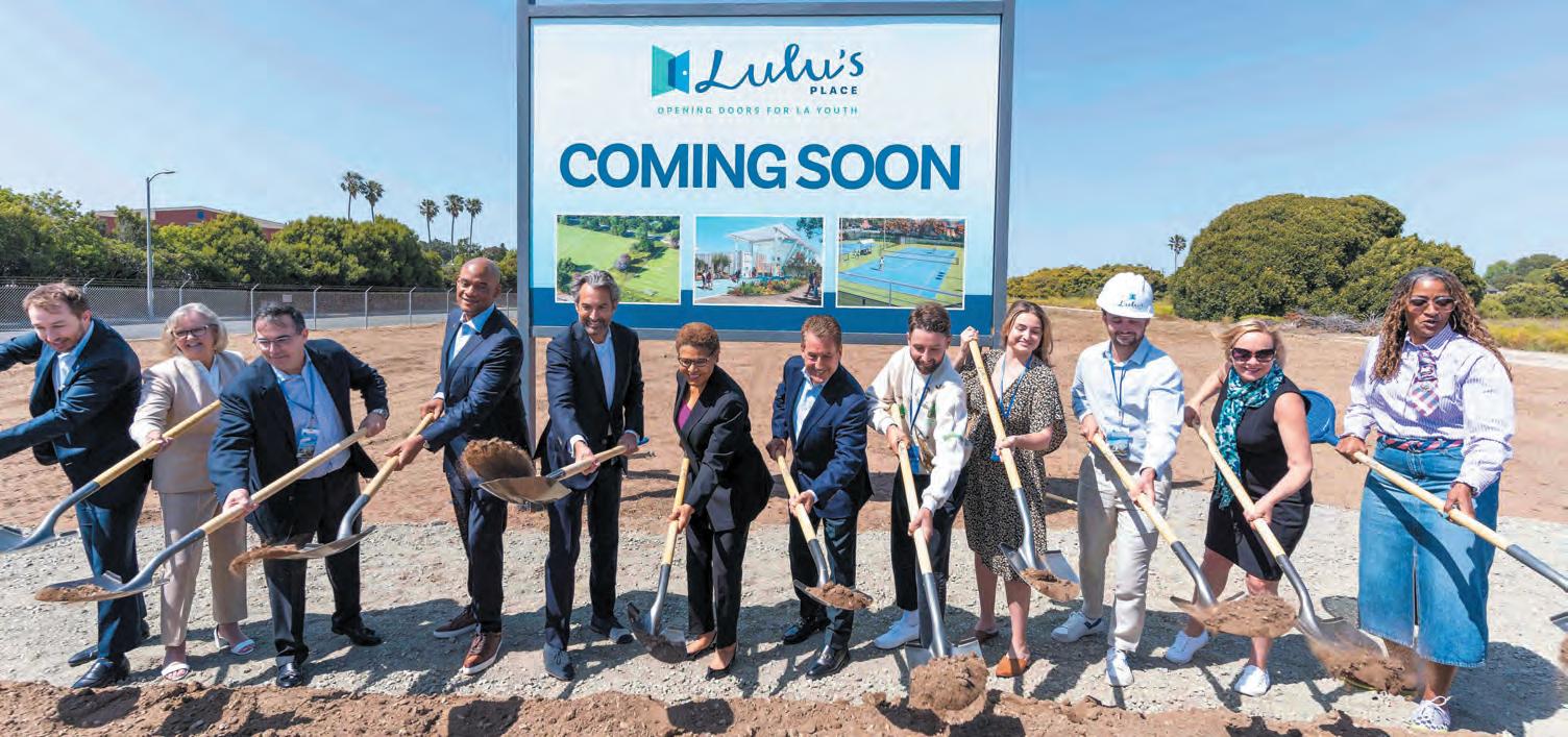 Coming soon to Playa del Rey. Community and city leaders gathered at the future site of Lulu’s Place on May 8 for a groundbreaking ceremony. The project, which is being led by the Kimmelman Family Foundation, is being funded entirely by philanthropic donations. Pictured: Public officials including Mayor Karen Bass, Councilmember Traci Park, County Supervisor Holly Mitchell, LAUSD Board Member Nick Melvoin and John Ackerman, CEO of Los Angeles World Airports, as well as the Kimmelman family, pose for a photo to celebrate the project.