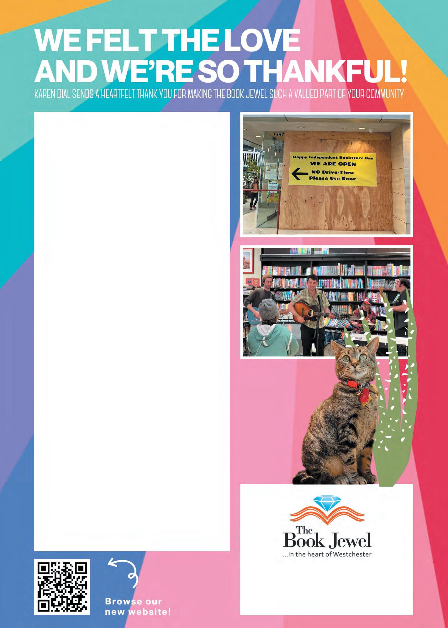 The Book Jewel was able to quickly reopen–just in time for Independent Bookstore Day on Saturday, April 26–after a car plowed into the shop in the wee hours of April 25. While the glass was shattered, fixtures smashed, merchandise damaged and the floor covered in oil, luckily the store did not sustain any structural damage. When the news quickly spread on social media that the shop’s cat, Paiges, was missing after the incident, the community was on high alert to help locate the beloved mascot, who a few hours later, was thankfully found hiding in the back room–scared, but unscathed. Support Westchester’s independent bookstore by shopping in-store for all your reading material, cards and gifts; ordering through their online system, following them on their socials (@thebookjewel); signing up for their newsletter, or by attending one of their numerous monthly events! The Book Jewel is located at 6259 W. 87th St. in Westchester. Learn more at thebookjewel.com.