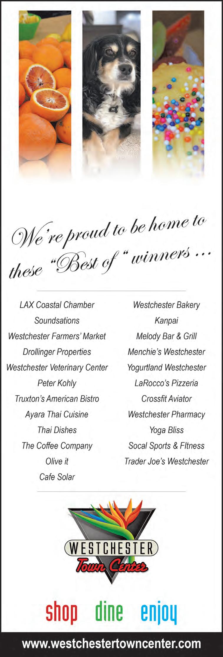 Front page photos (clockwise from top left): Best Community Club: Westchester Pickleball; Best Personal Training Studio: SocalSport & Fitness; Best Veterinary Center: Marina Veterinary; Best Date Night Restaurant: Tomat; Favorite Wellness Center: R E - LAX Chiropractic; Best Hamburger: Truxton’s American Bistro. Pickleball photo by Robert Higgins. All other photos by Zsuzsi Steiner for the Hometown News.
