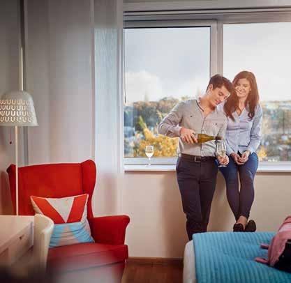 Contemporary hotel rooms completely styled by IKEA. Each floor also features a different theme and interior style. During your stay you can also use our gym with panoramic sauna for free!