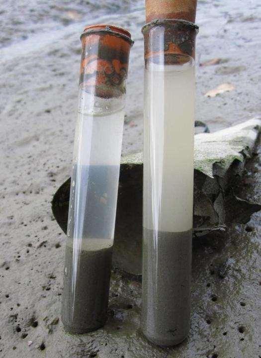 Settlement of catchment sediment: freshwater right saltwater left