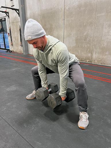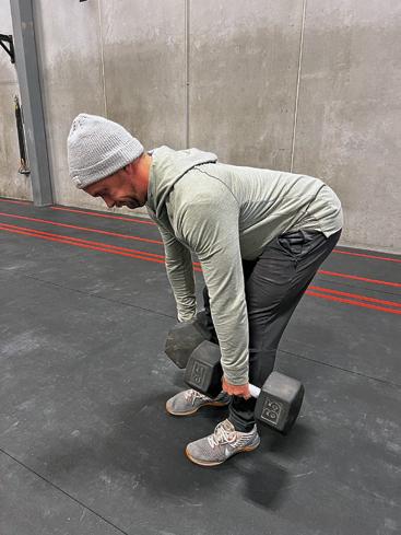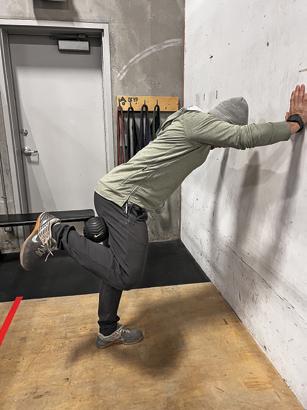 Single-leg movements are essential for building stabilization which is important on back country hunts. To begin, hold a dumbbell in your right hand. Lift your right foot just off of the floor as you balance on the left foot. Maintain a neutral spine and slight bend in the knee as you balance and bend forward at the hip to lower your dumbbell to about mid-shin height. As you bring the dumbbell back up, you should feel the work being performed in your glutes and hamstrings, not your back. Perform these movements on the same leg for