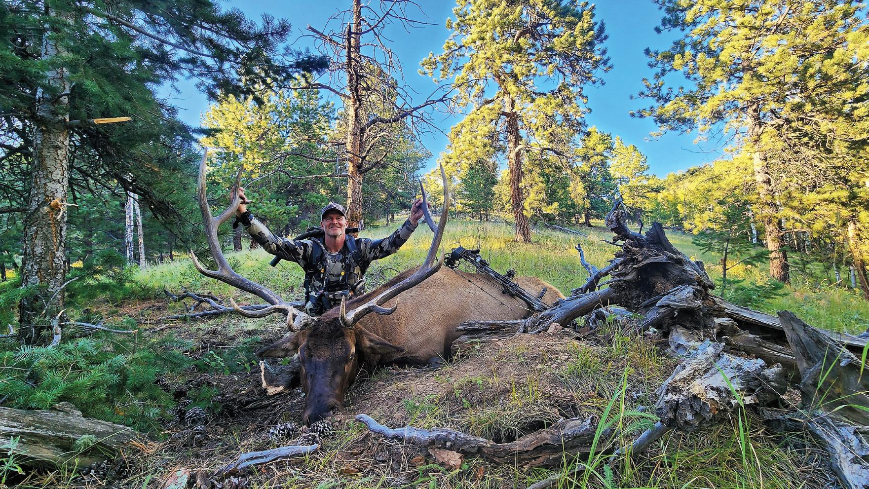 Before I could nock another arrow, he disap peared into the thick aspen grove, running his herd hard. I was happy for the clean miss but heartsick for the missed opportunity at such a rare herd bull, especially for this area. Although I knew I may never see him or his herd again, I couldn’t help but wish that lightning would strike twice for me on such an experienced and magnificent herd bull.