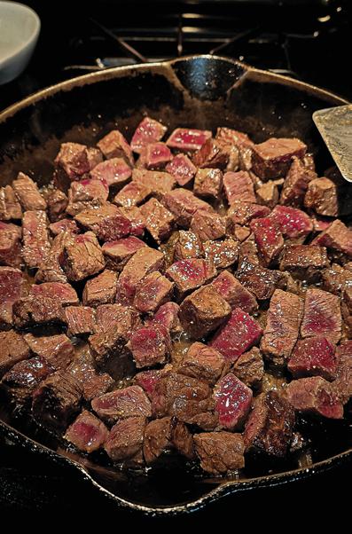 steak into bite-sized pieces and coat gener-
