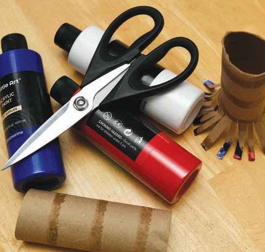 Cut slits halfway up one end of a toilet tissue roll to make a fringe.