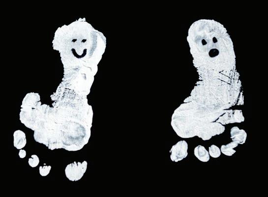 place the childs feet on the construction paper. Allow paint to dry. Decorate footprint ghosts as desired.