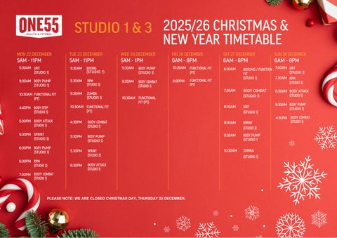 ONE55 Xmas-New Year group fitness timetable