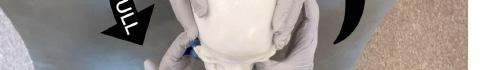 During our practice session, we had an assistant hold the trainer on a gurney with the head of the bed elevated (Image 2). This is the same positioning approach we use for real patients. For the conventional method, we were able to demonstrate and practice a sequential approach, in which each side is reduced in succession. This approach may be successful when a bilateral simultaneous approach fails.5 While practicing the extraoral technique, it became clear that the application of force in opposite directions on either side of the mandible is key (Image 3). This causes a rotational motion like the one employed in a