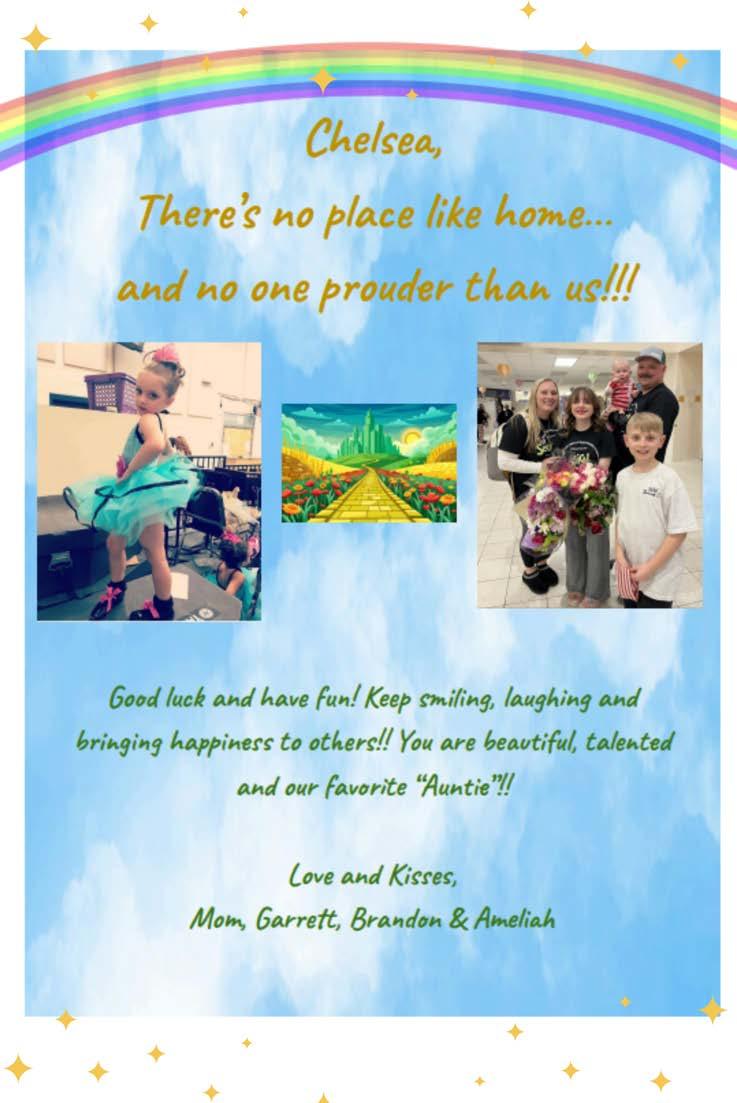 Chelsea Dishong (Aunt Em/Barrister) Chelsea is an 8thgrade,three-year musical participant! Chelsea isinvolved ina number ofactivities throughout the schoolincluding:Art Club, WIRC Club, Drama Club, Save Promise, Green Team, TRU, Broadcasting Club, and Student activities. Chelsea would like to thank her family and friends forsupporting her always.