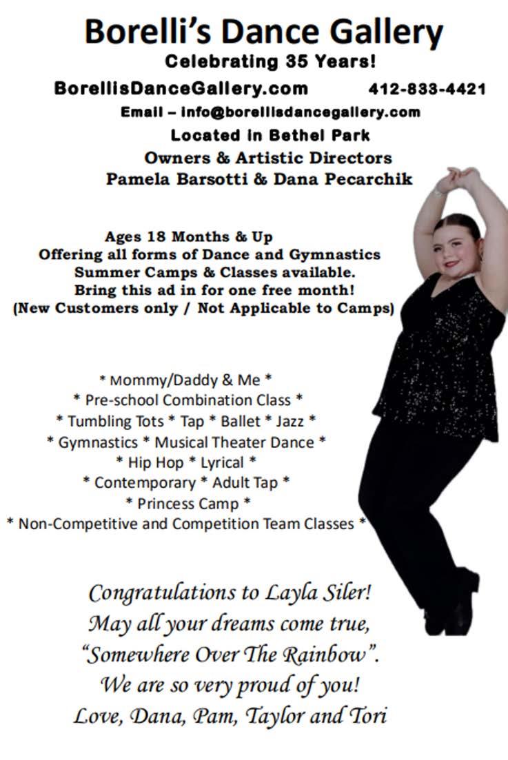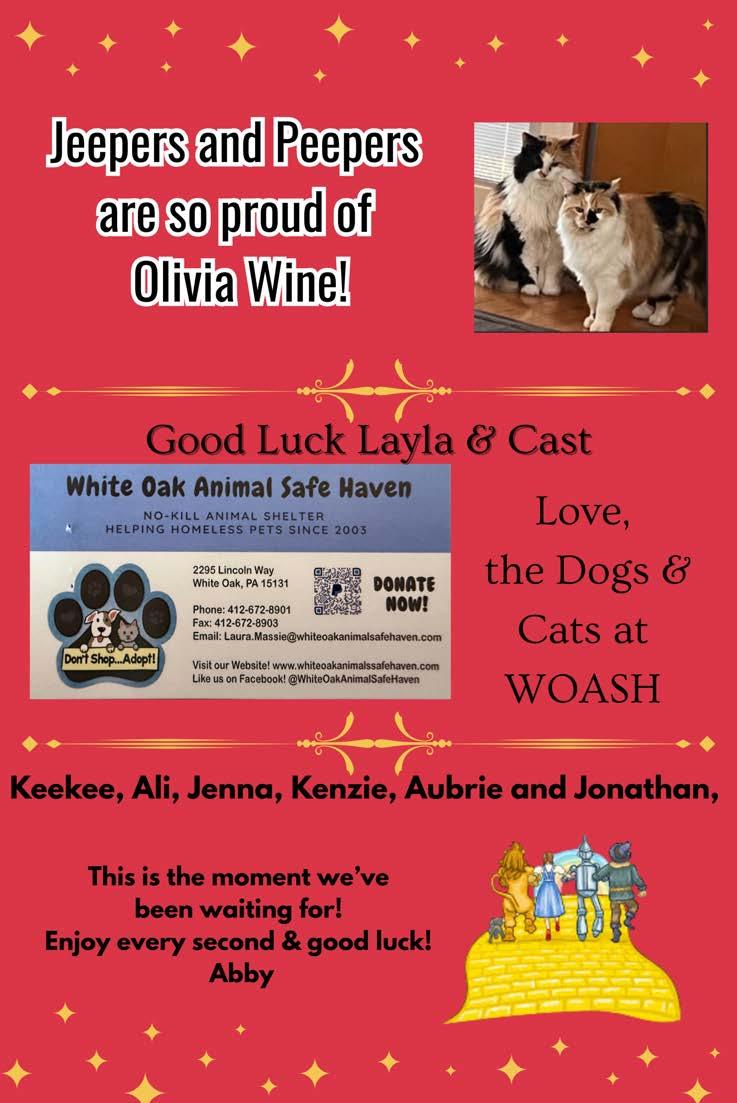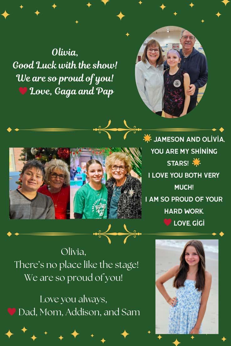 Olivia Anselmo (Crow/Featured Dancer) Olivia isa 7thgrader at West Mifflin Middle School. She is actively involved in Soccer, Swimming, the Job Holders Club, StudentCounciland Drama Club. Olivia loves to dance around her living room for fun, soshe’sa naturalon stage! “I’dlike to thank my family for supporting me in everything.I’dalso like to thank mymom, and my Aunt Amy for taking me to and from rehearsals!”