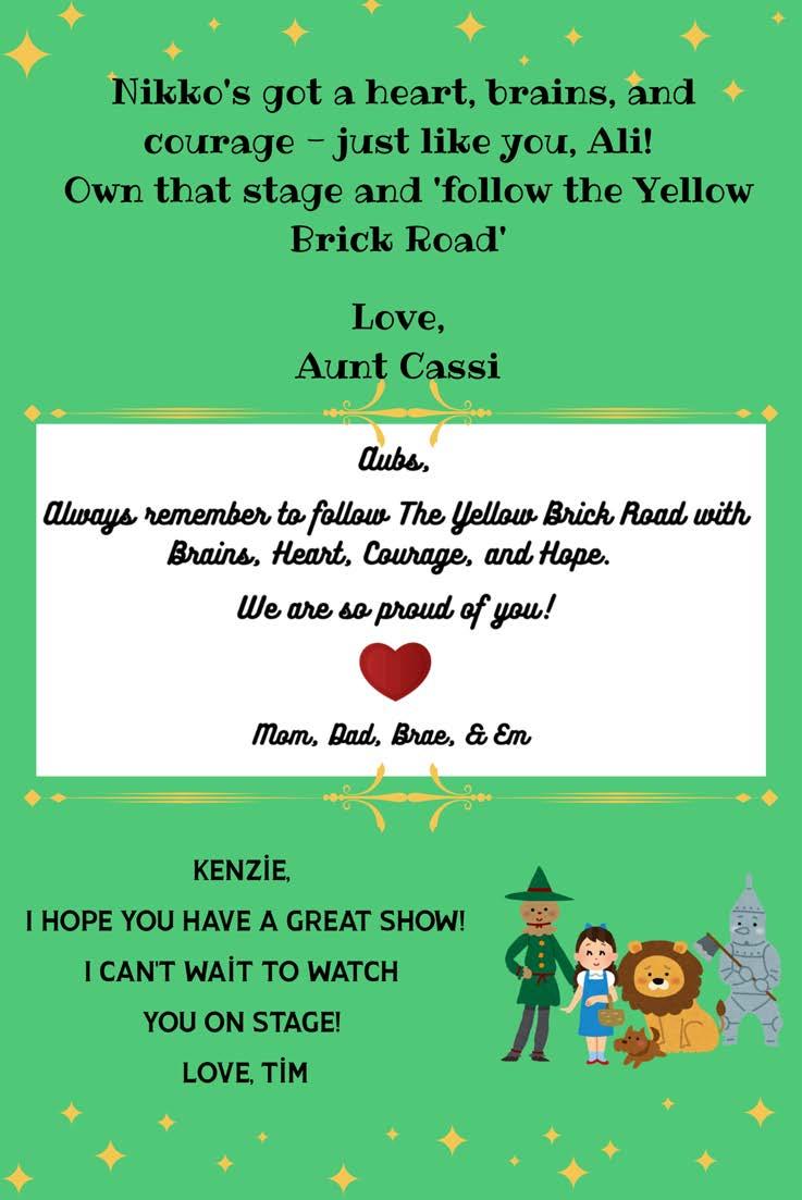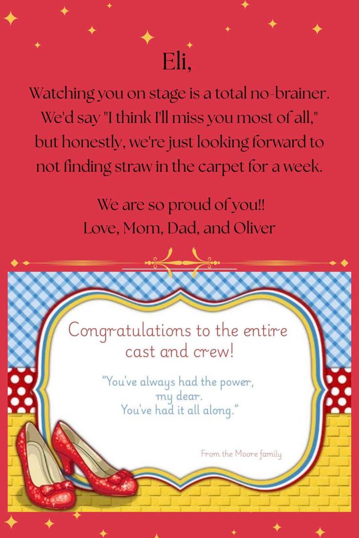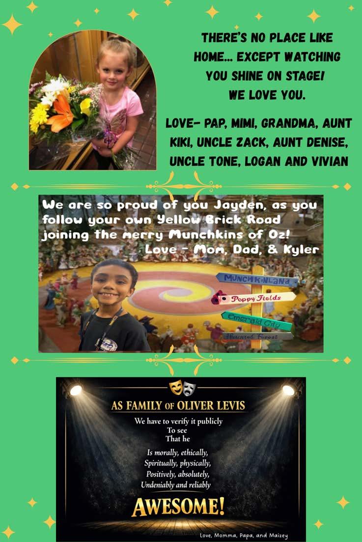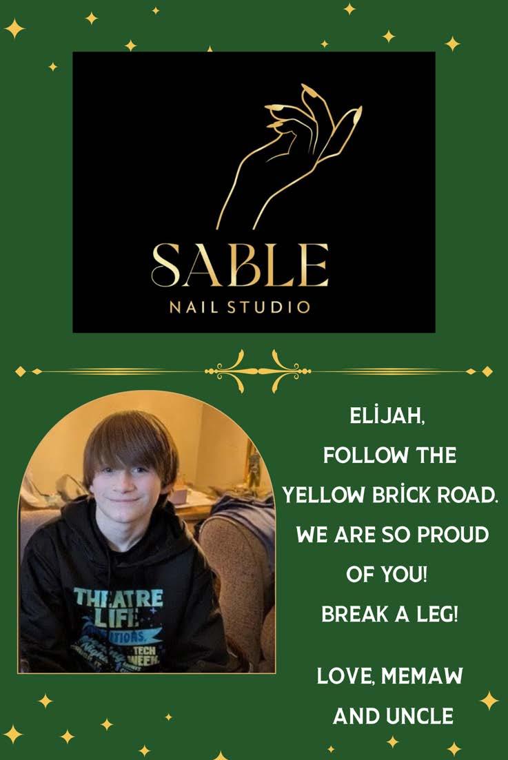 Zion Palko- isa5thgrade student at the middle school. He is inbandand chorus.He’dlike to thank his family for supporting him in the musical!