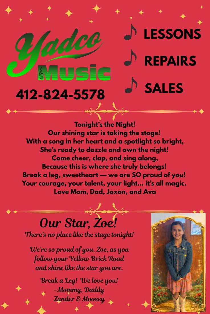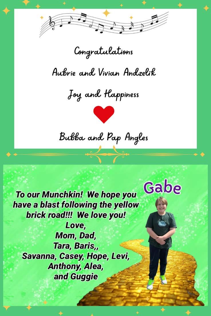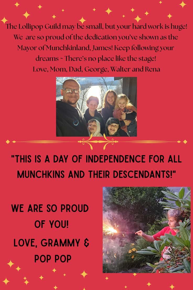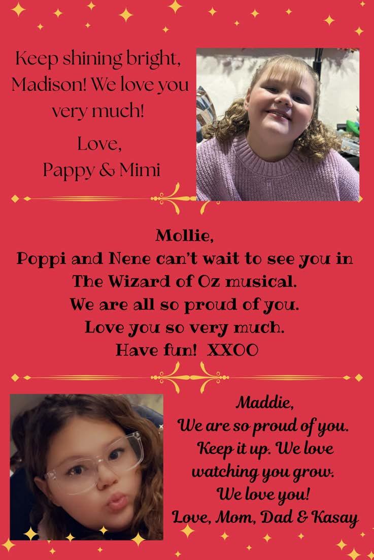 Zion Palko- isa5thgrade student at the middle school. He is inbandand chorus.He’dlike to thank his family for supporting him in the musical!