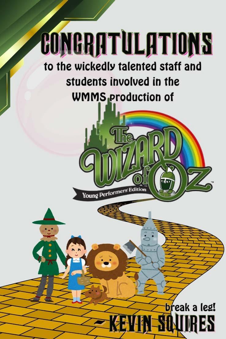 Kelsey Gloster (Glinda the Good Witch) Kelsey is an 8thgrade student in her first show at WMMS. In school, Kelsey is a member of the chorus, WIRC Club, Green Team, and Save Promise Club. She is also a cheerleader.Kelsey would like to thank Mrs. Ruffing, Mrs.Zebrowskiand Mrs. Sanders.