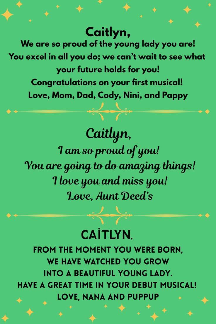 Caitlyn Thornton(Featured Singer) Caitlyn is a 7thgrade student in her first musical. Caitlyn sings in the chorus and plays soccer for WMMS.She’dlike to thank her family and friends thatshe’smade while inmusical.