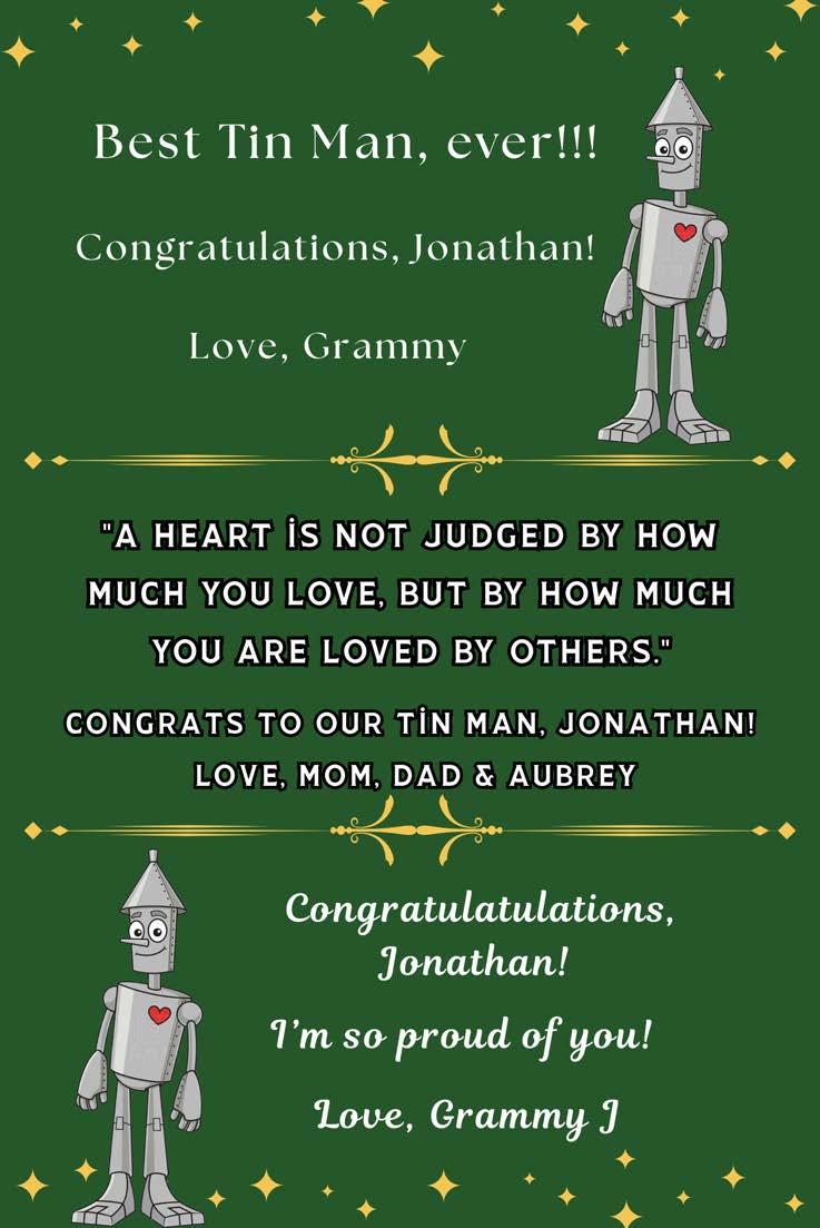 Jonathan Jaskulski (Tin Man) Jonathan is an 8thgrader in his final musical at the middle school.He isvery involvedthroughout the building with band, chorus, Job Holders Club, Yearbook Club, Student Council, PRIDE Partners, Drama Club and Titan Broadcasting Club. Jonathan would like to thank his family for being so supportive and proud of me for finally finding my “thing”.