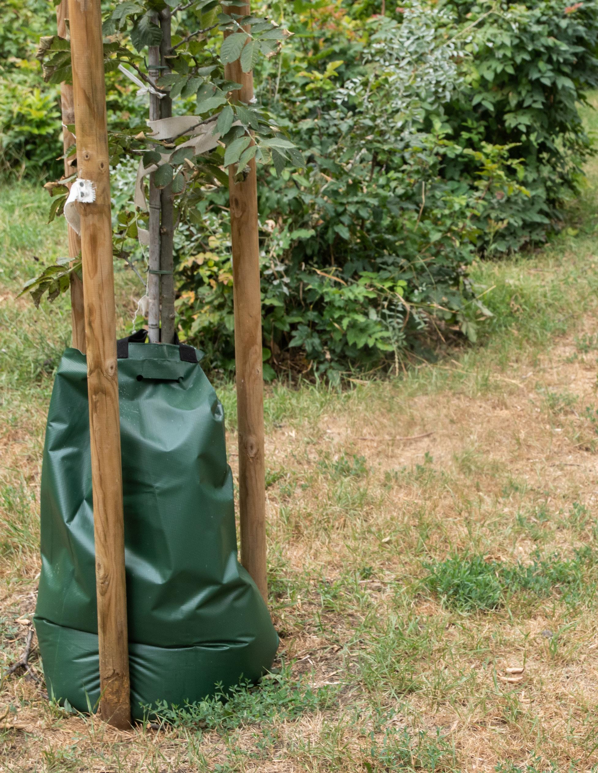 During droughts (May–Sep), provide 10 gallons per inch of trunk diameter
