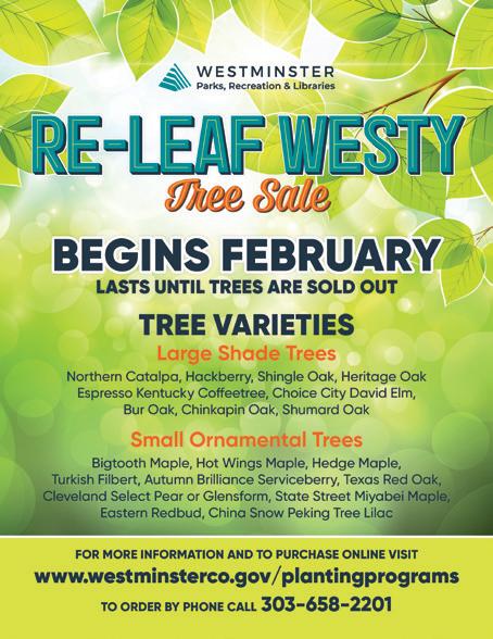 The City of Westminster Forestry Team offers trees best grown and selected for the region. Purchase through Re-Leaf Westy Tree Sale in February for pick up in April.