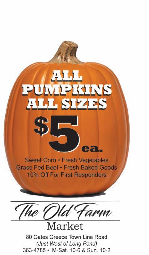 Westside News - East Edition - October 1, 2023 3 The 3rd Annual Kiwanis Drop Them off at: State Farm Insurance 409 South Union St., Spencerport Monday-Friday 8:30am-4:30pm by Friday, September 29th or Spencerport Bowl parking lot Saturday, September 30th and October 7th • 10am-3pm
