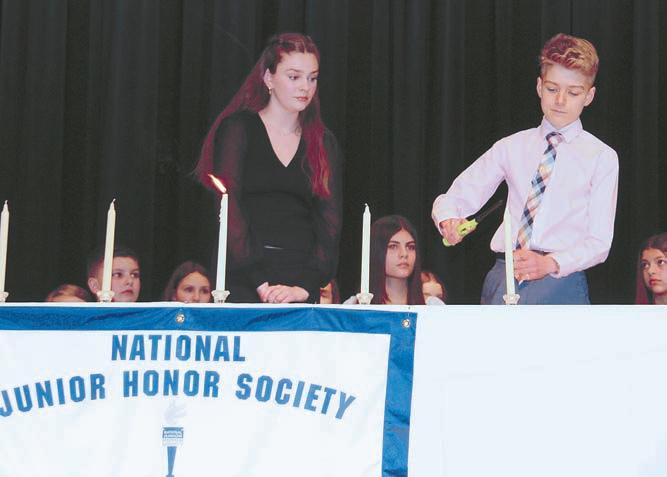 Hilton eighth graders Anelise Mott and Brody Tydings present the characteristics for National Junior Honor Society membership.