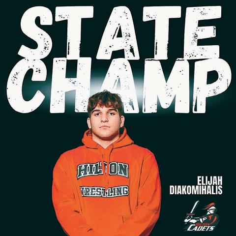 190 lb. weight class. He is the 13th State Champion (23rd individual title) in Hilton wrestling history, joining older brothers, Yianni and Greg. Photo from @HiltonCadets on X