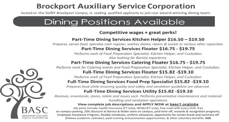 For all positions, apply on-line at: https://www.applitrack.com/brockport/onlineapp/