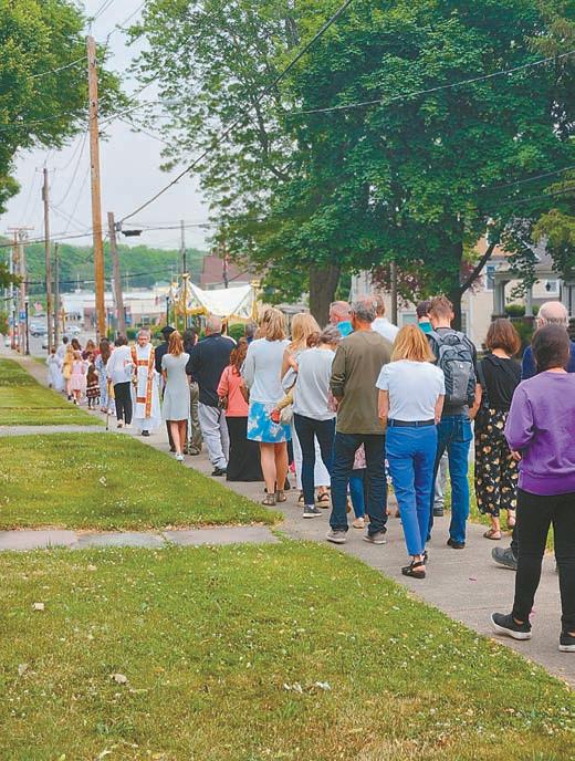 Parishioners from St. John the Evangelist process behind the Eucharist.