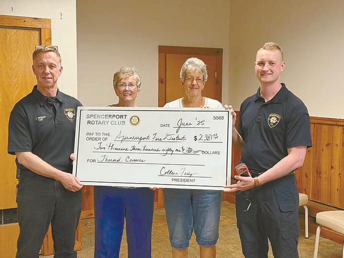 two Seek FirePRO 300 thermal imaging cameras. Spencerport Rotary presented the check to SFD members during a meeting on July 1. These cameras will be used by SFD instructors during live fire training to monitor conditions inside the burn building. Without them, instructors are limited by low visibility, making it difficult to safely assess student positioning and movement in real time. The entire instructor team will now have access to thermal imaging with the addition of these two units. This enhances both safety and effectiveness during every live-fire training session. Photo from @ SpencerportFD on X.
