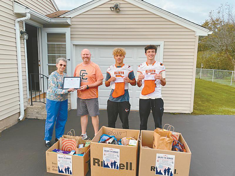 The Churchville-Chili football team held a Salute to Service collection event at their homecoming game against Gates Chili on Thursday, October 3. The collection was a big success, and the team was able to deliver the donations to American Legion Post #330 in Spencerport on October 4. The American Legion