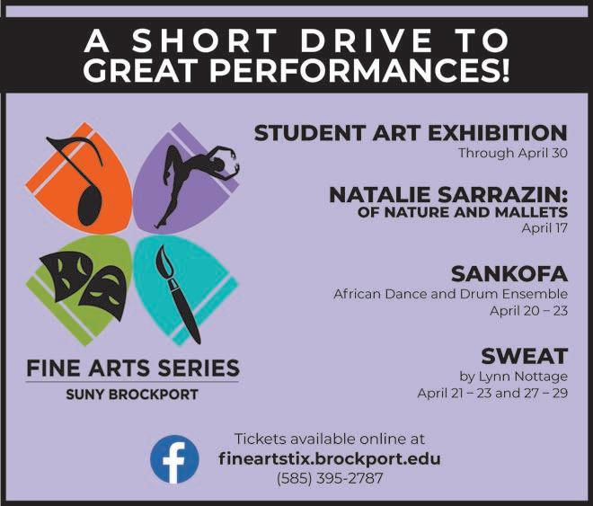 Each year, the Department of Dance at SUNY Brockport presents its Sankofa African Dance and Drum Ensemble. And each year, the audiences leave the theatre at the end of the concert energized and elated. This year’s performances take place on Thursday, April 20, through Saturday, April 22, at 7:30 p.m., with a matinee on Sunday, April 23, at 2 p.m. in the Hartwell Dance Theater on the Brockport campus. Ticket prices for all performances are $17/general, $12/seniors, SUNY Brockport alumni, faculty and staff and $9/students and will be available online at fineartstix.brockport.edu, by phone at 585-395-2787 or at the Tower Fine Arts Center Box Office, 180 Holley Street, Brockport.
