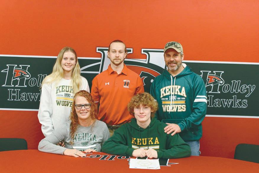 On March 10, Holley senior varsity boys soccer player Cameron Bates signed with Keuka College to play collegiate soccer. Cameron, a Genesee-region League All-Star, plans on majoring in Business Sports Management. “I am excited to be able to continue my soccer career,” he said. He was a sectional finalist, team captain and played in the Senior All Star Game. He was selected as Most promising player as a 10th grader, and then as Most Valuable player
