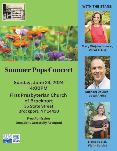 •Brockport Symphony Orchestra presents a Summer Pops Concert on Sunday, June 23, 4 p.m., at First Presbyterian Church of Brockport, 35 State Street. Free admission; donations accepted.