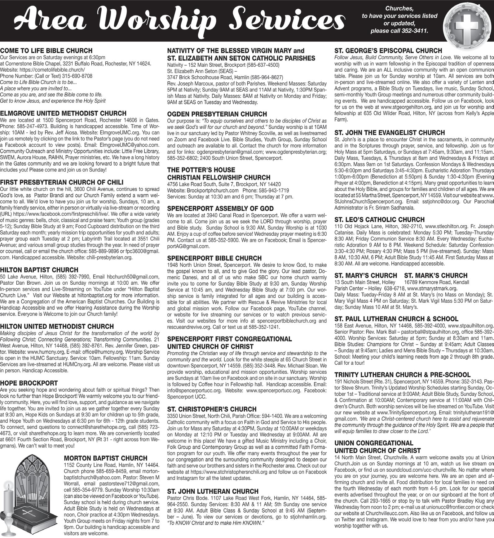 We always, all ways give you more www.westsidenewsny.com (585) 352-3411 • FAX (585) 352-4811 P.O. Box 106 1776 Hilton-Parma Corners Road (Route 259) Spencerport, NY 14559
