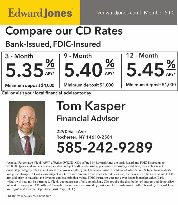 16 Westside News - West Edition - September 17, 2023 389 East avE., Brockport • 585-637-4745 7 Days a WEEk • Mon.-sun. 9-5 Sale prices are valid between Sept. 9-16 all Major credit cards accepted 20% Off All Plants It’s Time For Our Annual CUSTOMER APPRECIATION DAYS! ALL ANNUALS, Perennials, Trees & Shrubs. Including plants already on sale! (Excluding Mums) Sara’S Garden Last Pottery For The Season 30% OFF Fall Bulbs Are Here! Don’t Forget to Winterize Your Yard with Turfline! The first ones are ready to go... Fall Pumpkins, Gourds, Pansies and more! 8” Mum Sale $799 ea. Churchville-Chili Central School District Seeking Applicants for: • Heating Ventilating & Air Conditioning Engineer • Substitute Teachers • Teaching Assistant • Security Worker • Cleaner https://jobs.schoolsites.com/CCCSD/ Please visit our jobs page to learn more about each position & how to apply: • Maintenance Mechanic II • Automotive Bus Mechanic • Groundsperson • Head Bus Driver • Bus Drivers; Full-time, Part-time & Substitutes