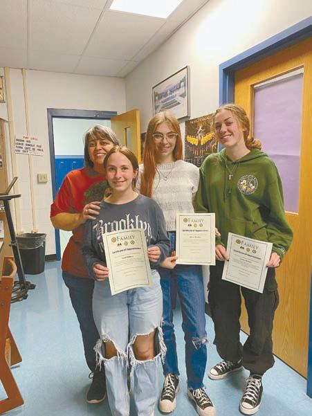 Christina Falbo, teacher at Spencerport High School and member of the American Legion Auxiliary Unit 330 in Spencerport, recently presented some students with certificates of appreciation. The certificates, from the American Legion Family of Ferris Goodridge Post 330 were given to the students in recognition for helping at various community events