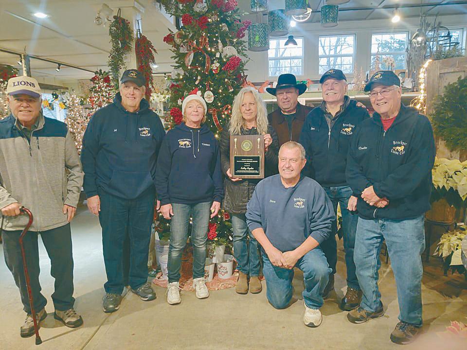 The Brockport Lions Club presented the Robert J. Uplinger Distinguished Service Award to Kathy Kepler of Sara’s Garden Center for her commitment to service and time that she willingly shares in the Brockport community. Pictured are some of the Brockport Lions members with Kathy in the center holding her award. Provided information and photo.
