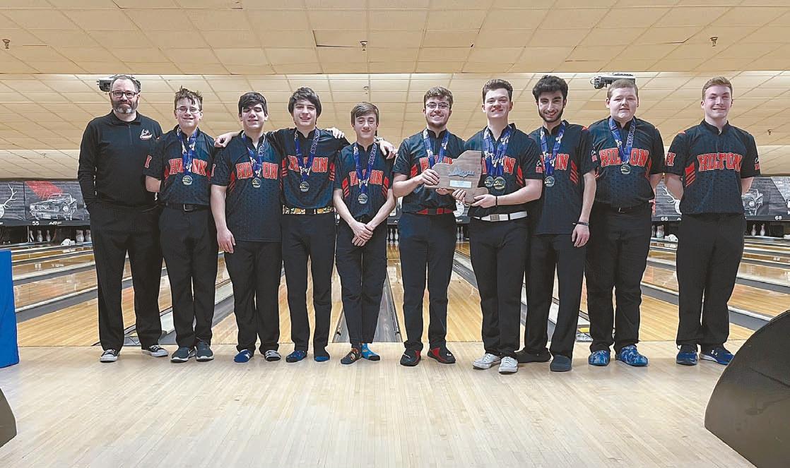 On March 10, the Hilton varsity boys bowling team finished second at States in Syracuse. Senior Brendan Stephenson (at right) led the way with a 1,343 series for six games, including a perfect 300 game to start the day. Also contributing high scores were juniors Matthew Carmestro (268, 224) and Anthony Getty (231, 224), as well as seniors Mason Williams (231, 213) and Jacob Morrill (234, 217). The boys team totaled 6,263 pins in the six-game set. Varsity team shown above: (l-r) Coach Scott Stephenson, Elio Conway, Matthew Carmestro, Anthony Getty, Alex Morrill, Mason Williams, Brendan Stephenson, Jacob Morrill, Jeremiah Wenzel, and Aiden French. Provided information and photos.