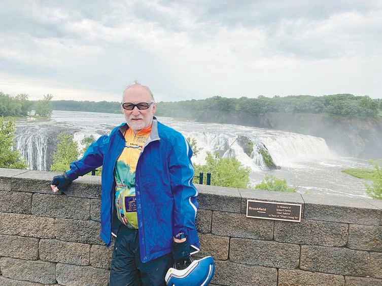 “After having ridden the Erie Canalway on a self-supported trip in 2021, it was great to have the opportunity to ride the route again, but with support from Parks and Trails of NY. The friends, the extra tours, the town receptions, the lectures and festivities all made it a wonderful experience. In addition to the cycling experience, I learned much about the history and culture of the area and the Canal.” – Charlie Long at Cohoes Falls on the Mohawk River. Photo by Karen Fien.