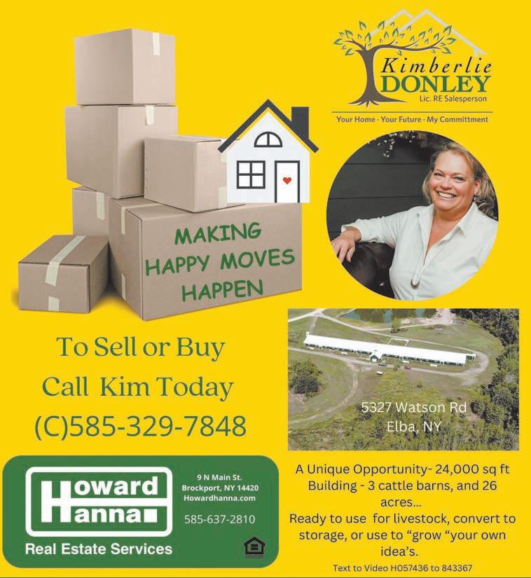 D E N T I S T R Y Wegmans EmployeesGive us a call, we have you covered. Don’t take a gamble, Call Janet Campbell 85 South Union Street, Spencerport Janet Campbell Licensed Associate Real Estate Broker (c) 585-739-8065 Custom built by Reger Construction this amazing Spec/Model ready in the New Year. Under construction, 4 bedrm., 2.5 bath, Colonial with high end amenities. Still time to make final choices! Includes paved driveway, granite counters, central air, seeded lawn and much more in the price of $479,900. Hilton Schools, Parma taxes. Stop losing bids on existing homes and lock in with a brand new one. 237 Collamer Rd., Parma $479,900 18 Meadowview Dr., Sweden $242,700 Welcoming Cape Cod featuring 4 bedrooms, living room plus a family rm. addition behind the garage. Enjoy first floor laundry, large mud room and a 2.5 car garage. Furnace 2022, Hot Water Tank 2021, basement professional water proofing and more. Close to many amenities including University of Brockport and canal path.