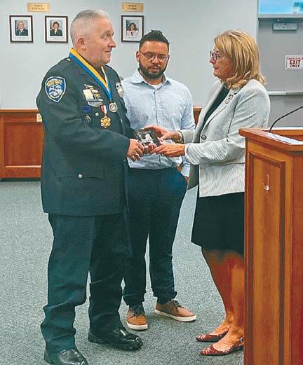Senator Pam Helming presented the New York State Senate Commendation Award to Rochester Police Officer Denny Wright. Officer Wright was recognized at a ceremony during a recent Chili Town Board meeting.