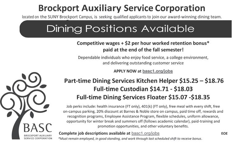 General meetings offer networking opportunities and are held at noon on the third Wednesday of the month from September through June. Locations and programs vary so check www.spencerportchamber. org/events for details. Meet, mingle and mix with Spencerport area business neighbors at these upcoming meetings: