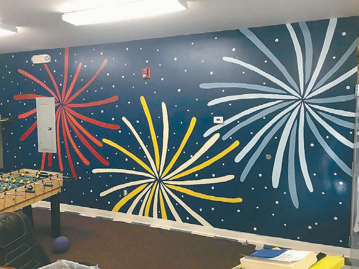 First she designed and printed shirts as a fundraiser. Then she led a group of youth in painting a mural she designed for the youth room at Spencerport Wesleyan Church. She also led a group to build a 9 square game and paint sidewalk games on the church parking lot.