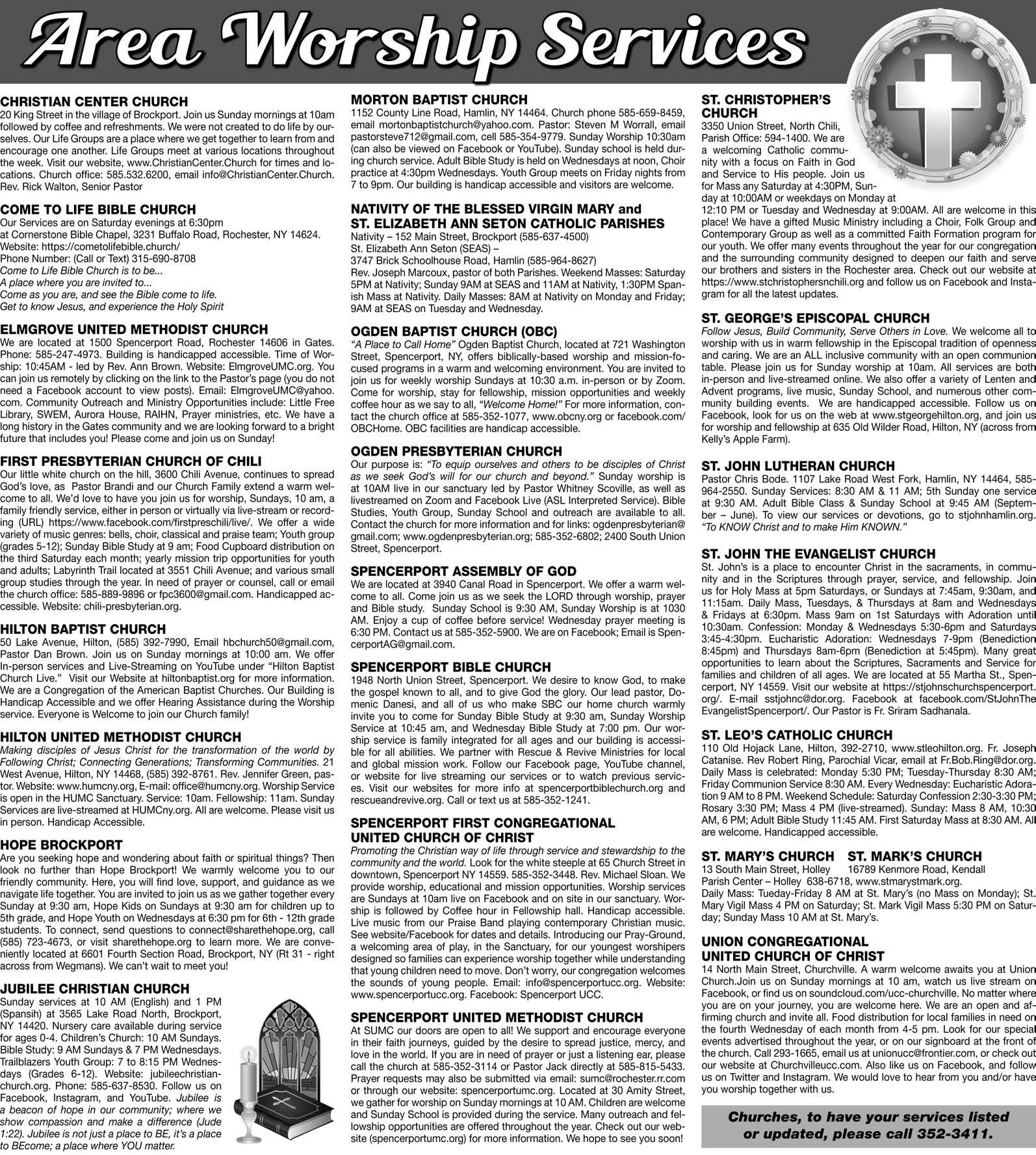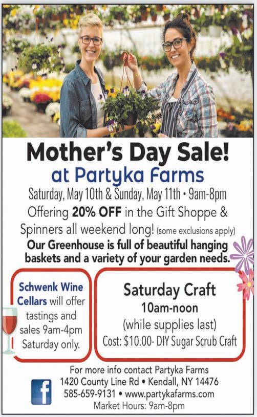 nual benefit to the local community. The longevity of the NCFM is a testament to the value and dedication of its patrons, the community, and the local farmers and vendors who have participated through the years. Bring your family and friends for the Preliminary NCFM and Plant Sale and be a part of this half-centuryold Farmers Market. The NCFM is located at the United Methodist Church of North Chili, 2200 Westside Drive (at Buffalo Road and Westside Drive). Visit northchiliumc.org/farmers-market for information and updates. Provided information