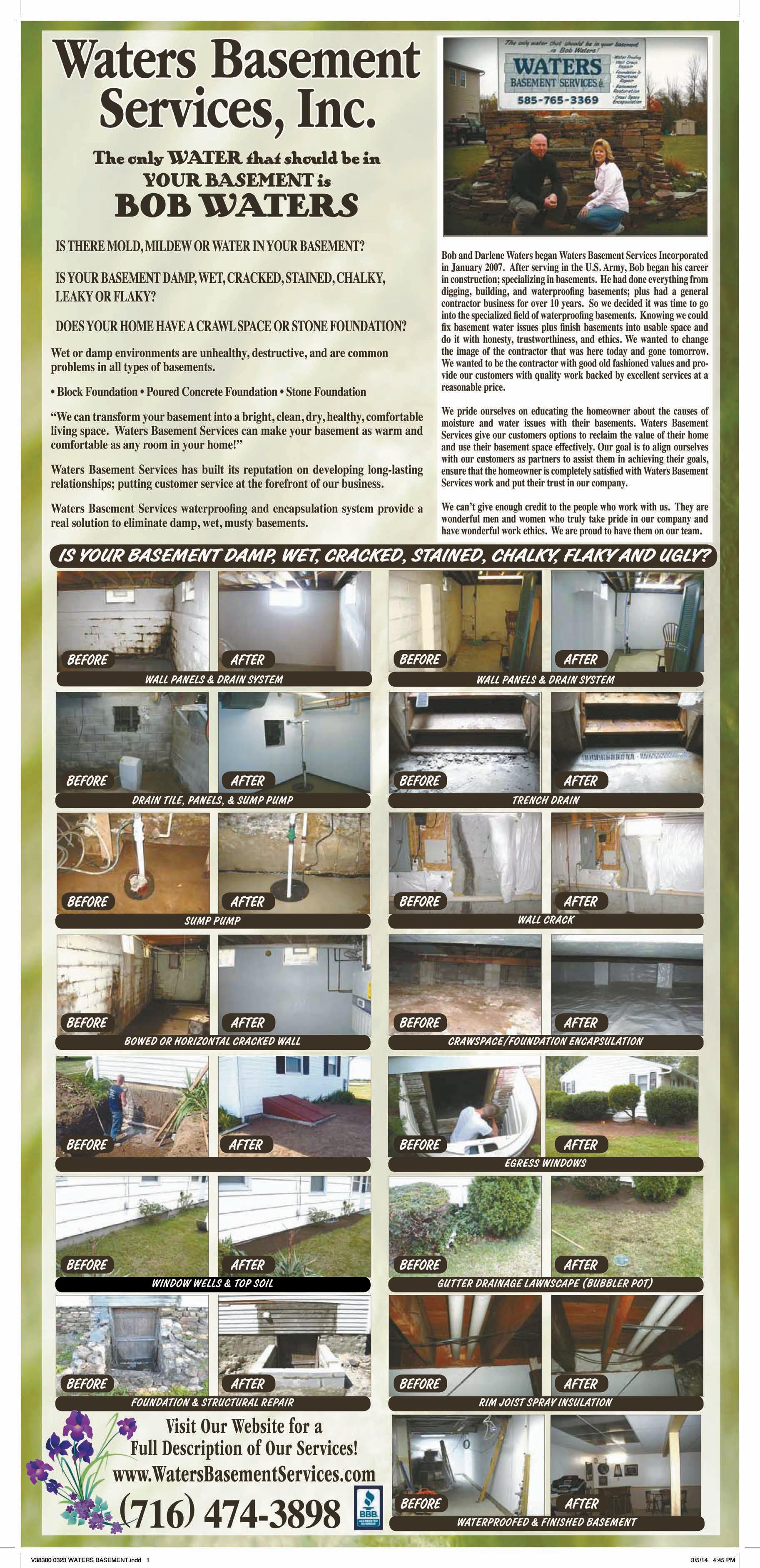 Waters Basement Services has built its reputation on developing long-lasting relationships; putting customer service at the forefront of our business.
