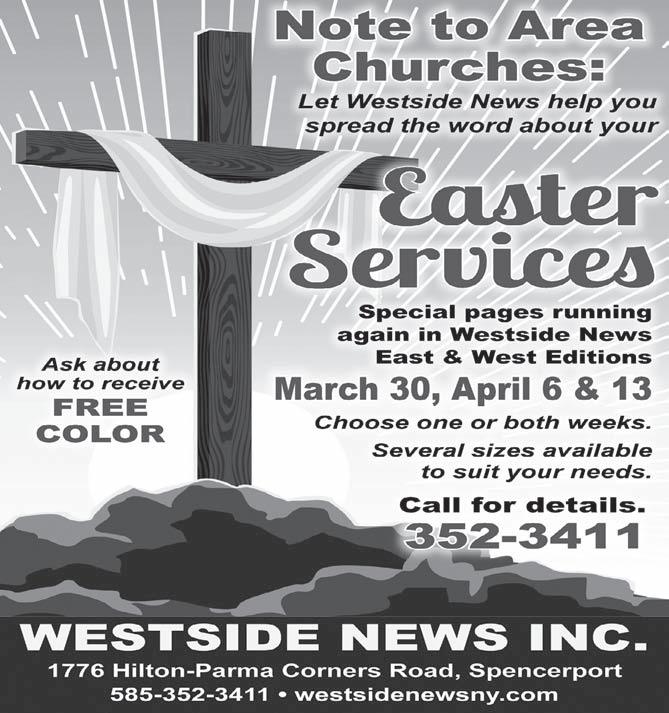 We always, all ways give you more www.westsidenewsny.com (585) 352-3411 • FAX (585) 352-4811 P.O. Box 106 1776 Hilton-Parma Corners Road (Route 259) Spencerport, NY 14559 Office