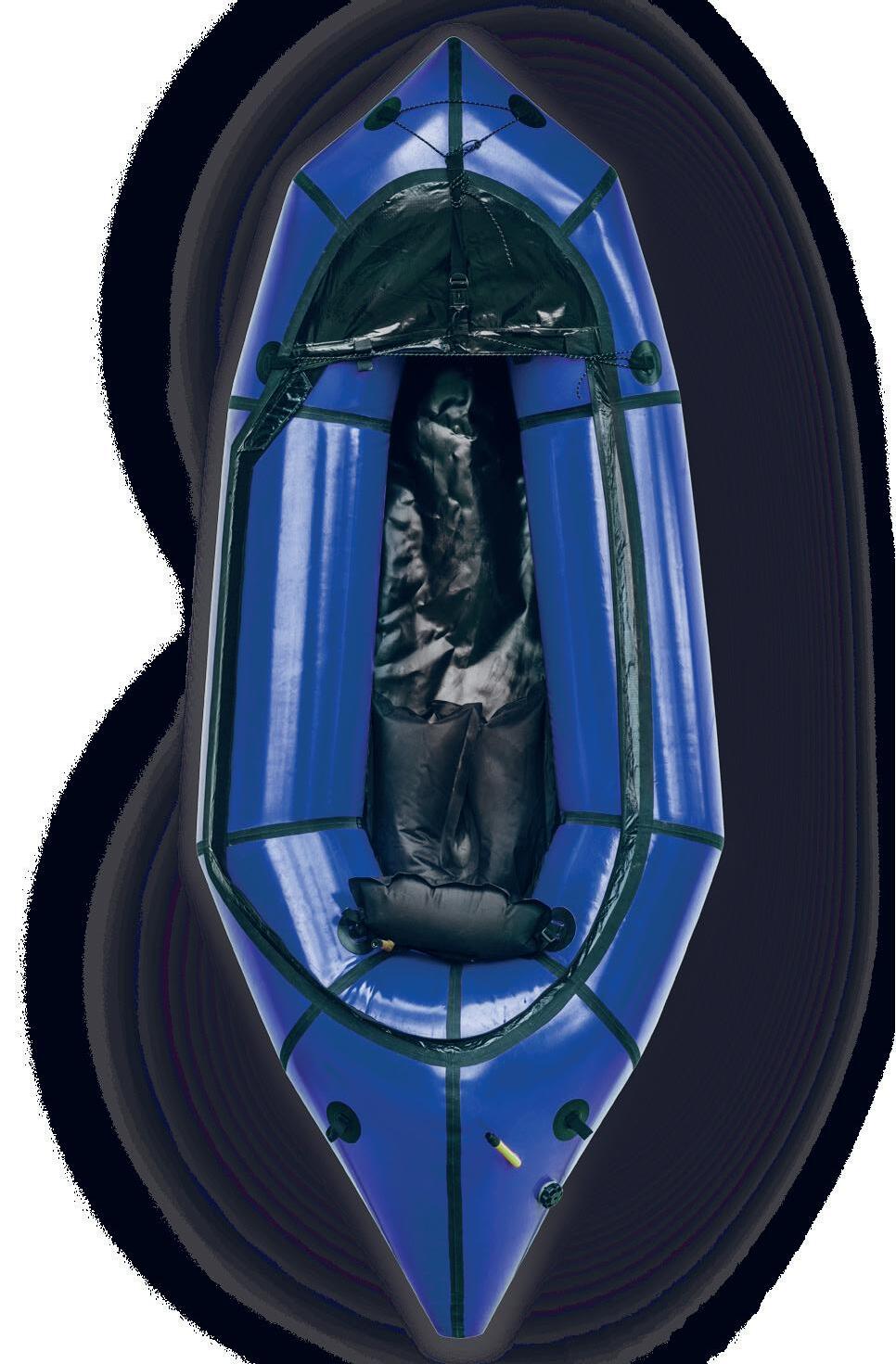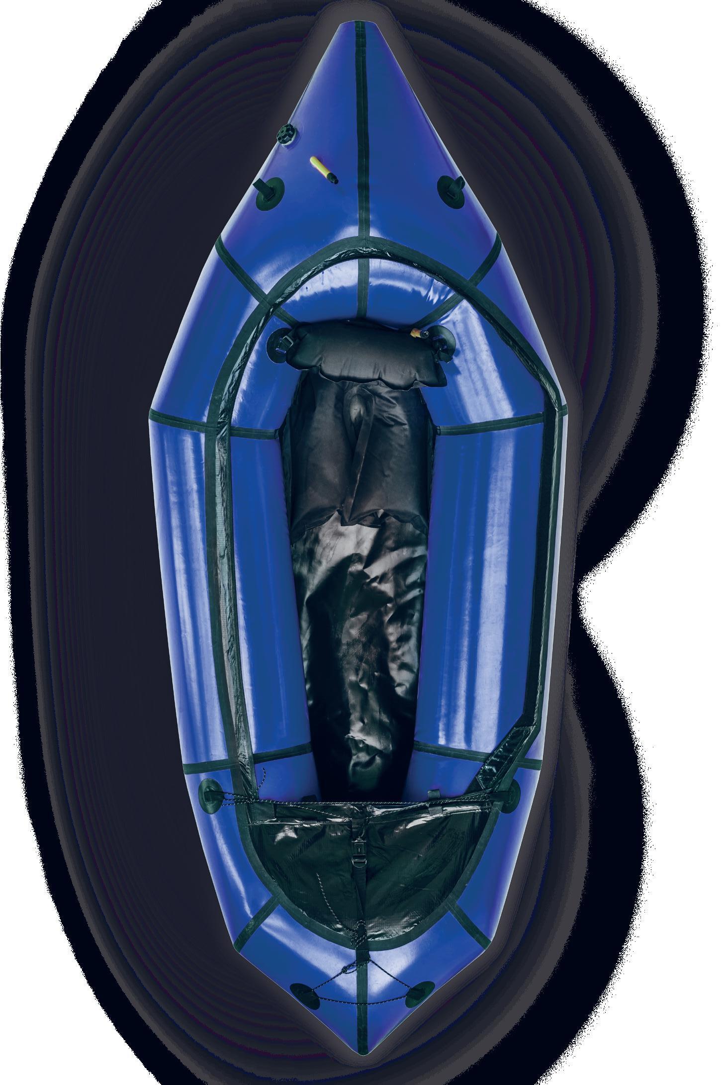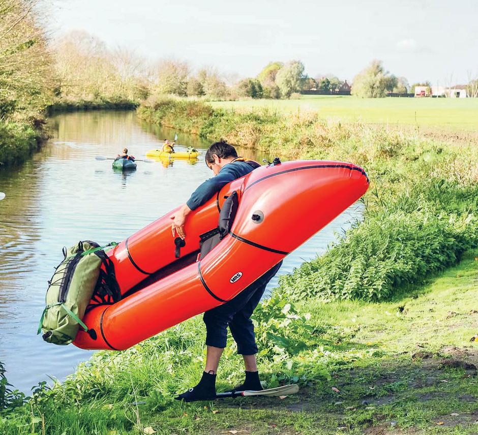 Een packraft is een opblaasbare boot die licht en klein genoeg is om in een rugzak te dragen. Je blaast de boot op door met een nylonzak lucht in de packraft te persen.